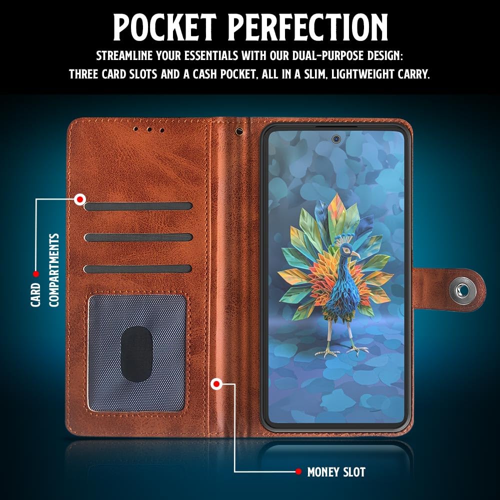 Shock Proof Flip Cover Back Case for Hmd Crest Max 5G | Magnetic Wallet Leather Case with Stand
