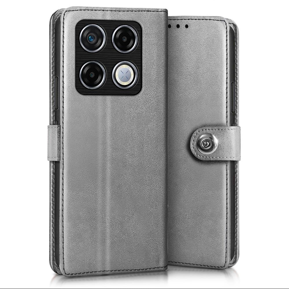 Buy premium shock proof flip cover back case for infinix gt 20 pro. Leather finish with magnetic flip closure, wallet pockets and stand support. Durable protection against drops and scratches with a perfect fit for infinix gt 20 pro.