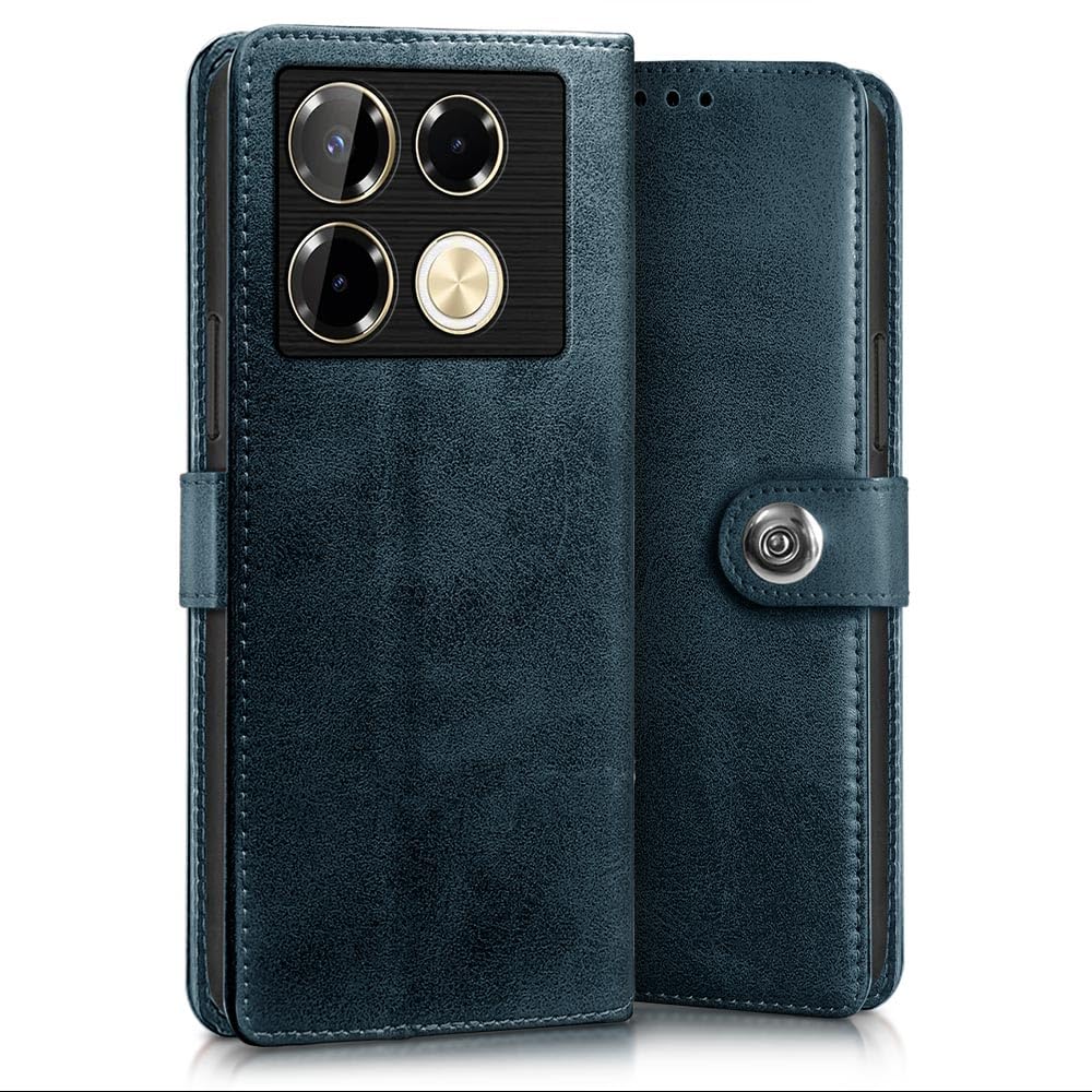 Buy premium shock proof flip cover back case for infinix note 40 pro. Leather finish with magnetic flip closure, wallet pockets and stand support. Durable protection against drops and scratches with a perfect fit for infinix note 40 pro.