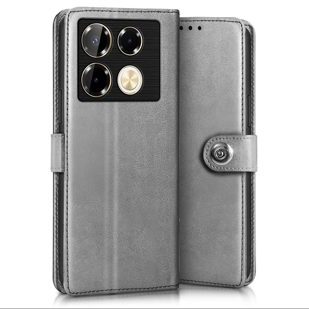Buy premium shock proof flip cover back case for infinix note 40 pro. Leather finish with magnetic flip closure, wallet pockets and stand support. Durable protection against drops and scratches with a perfect fit for infinix note 40 pro.