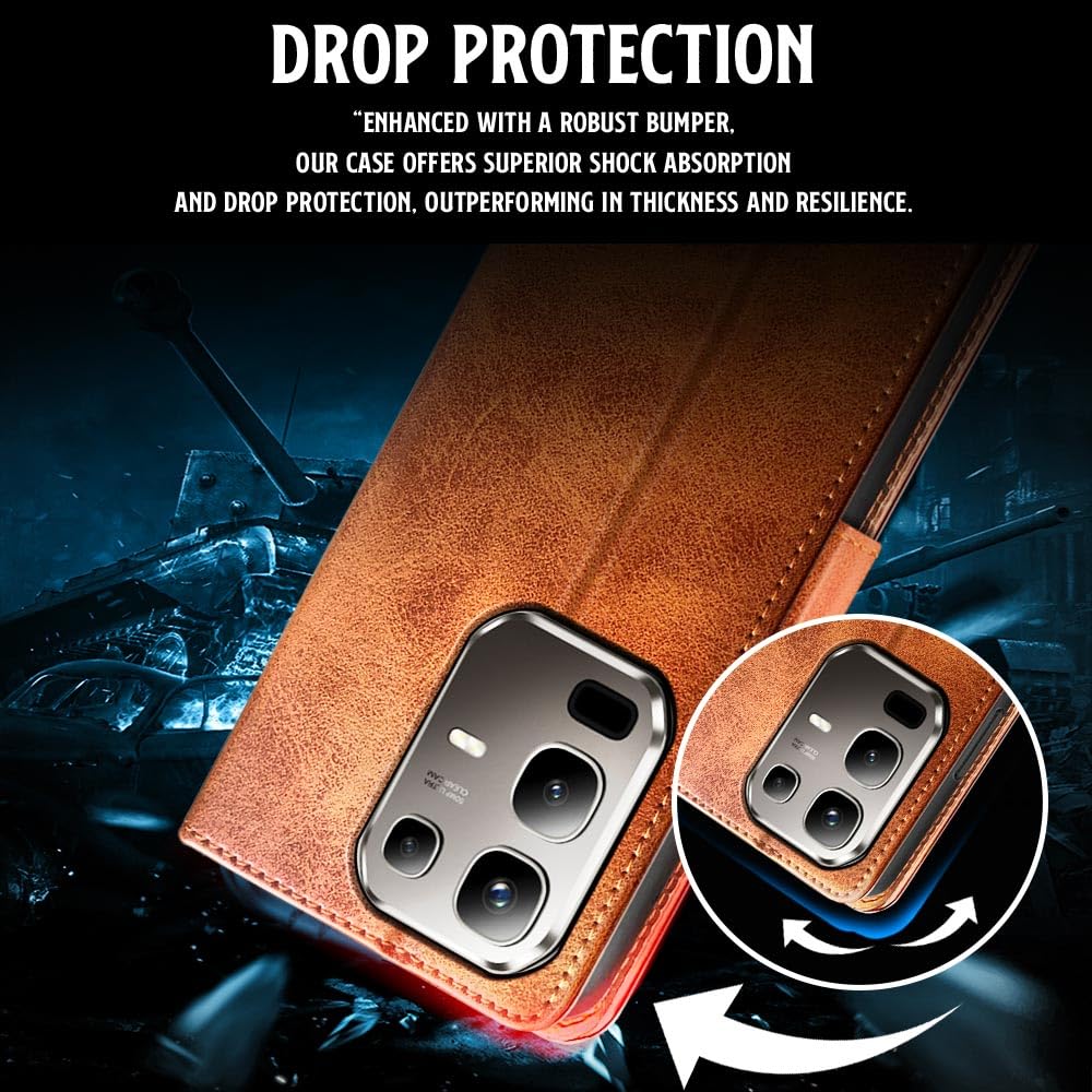 Shock Proof Flip Cover Back Case for Infinix Note 50X 5G | Magnetic Wallet Leather Case with Stand