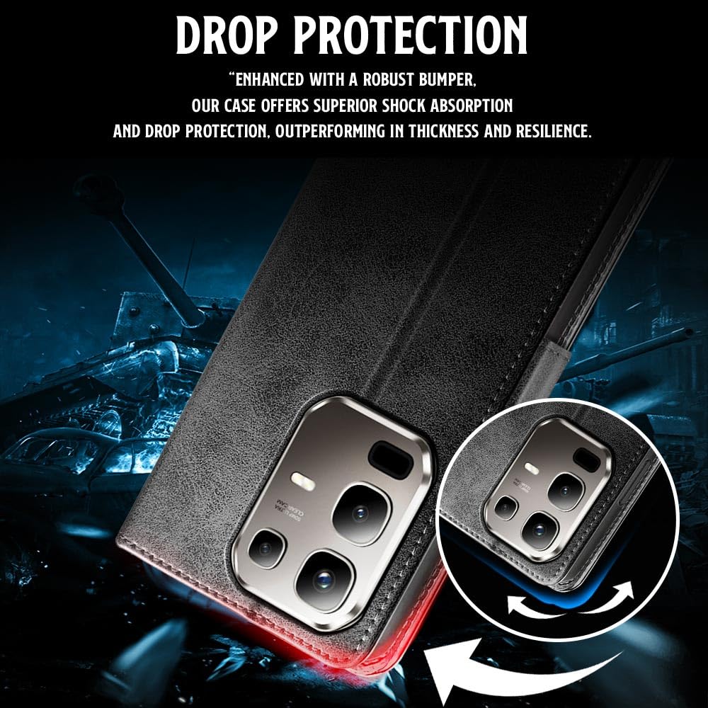 Shock Proof Flip Cover Back Case for Infinix Note 50X 5G | Magnetic Wallet Leather Case with Stand