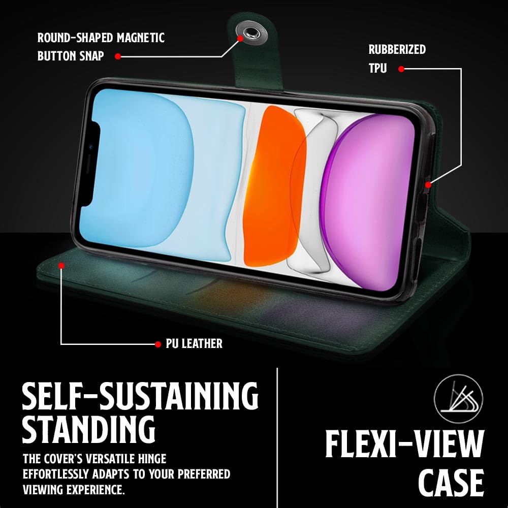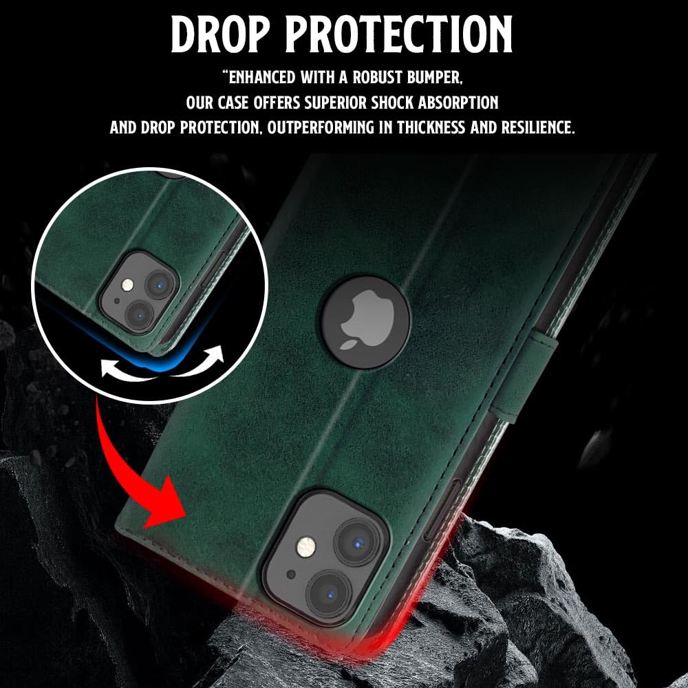Shock Proof Flip Cover Back Case for Iphone 11 | Magnetic Wallet Leather Case with Stand