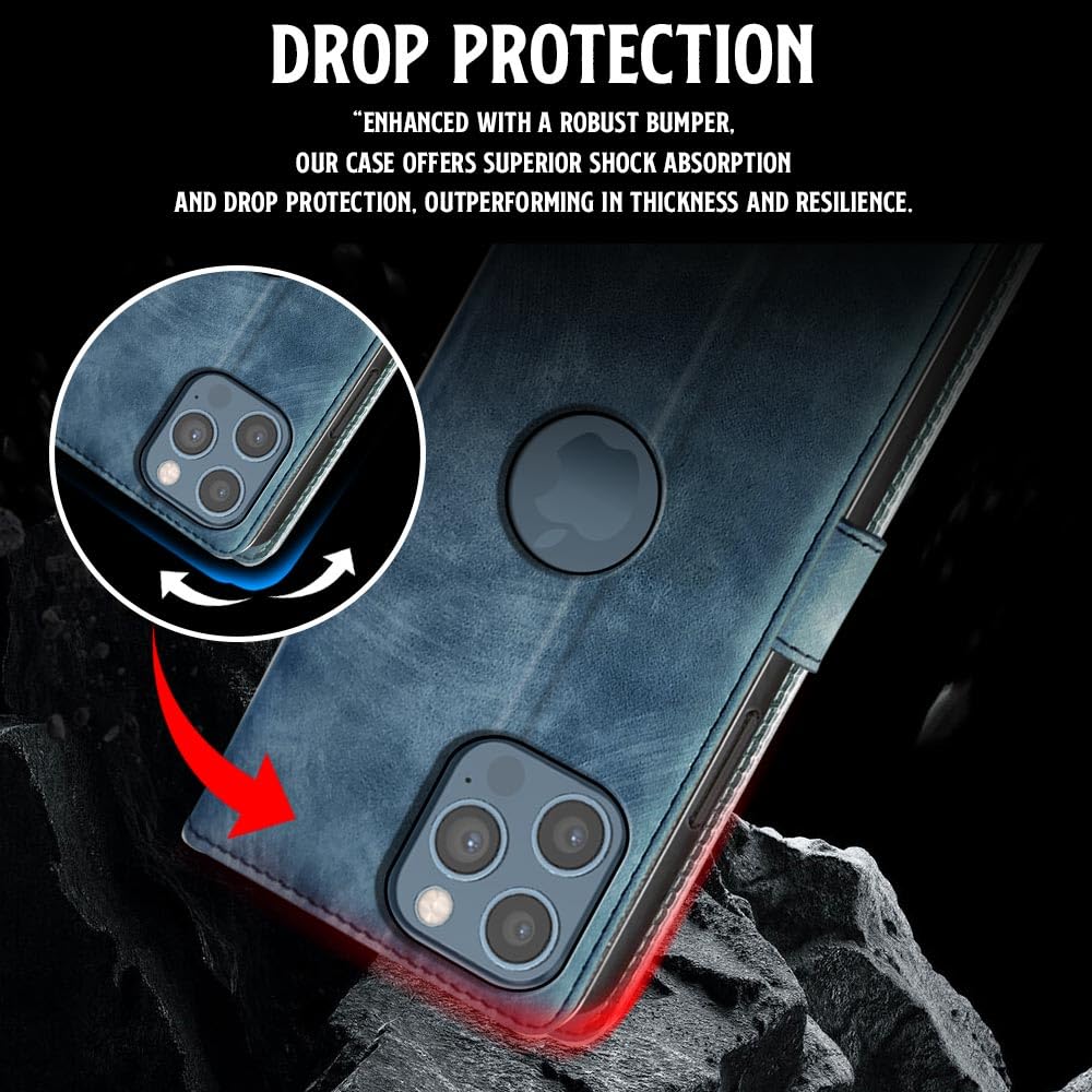 Shock Proof Flip Cover Back Case for Iphone 12 Pro | Magnetic Wallet Leather Case with Stand