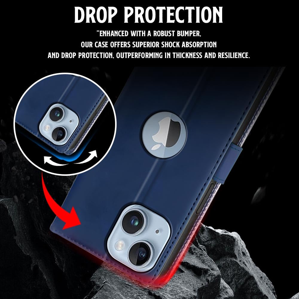 Shock Proof Flip Cover Back Case for Iphone 14 Plus | Magnetic Wallet Leather Case with Stand