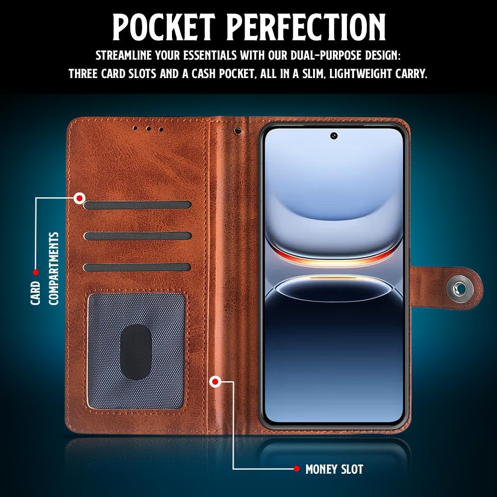 Shock Proof Flip Cover Back Case for Iqoo 13 5G | Magnetic Wallet Leather Case with Stand