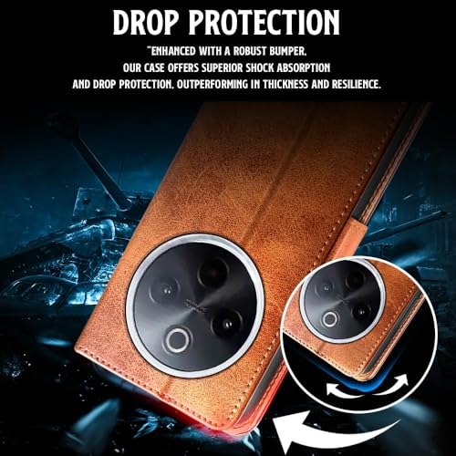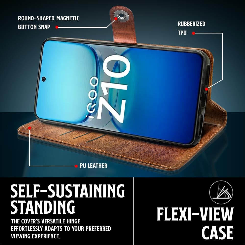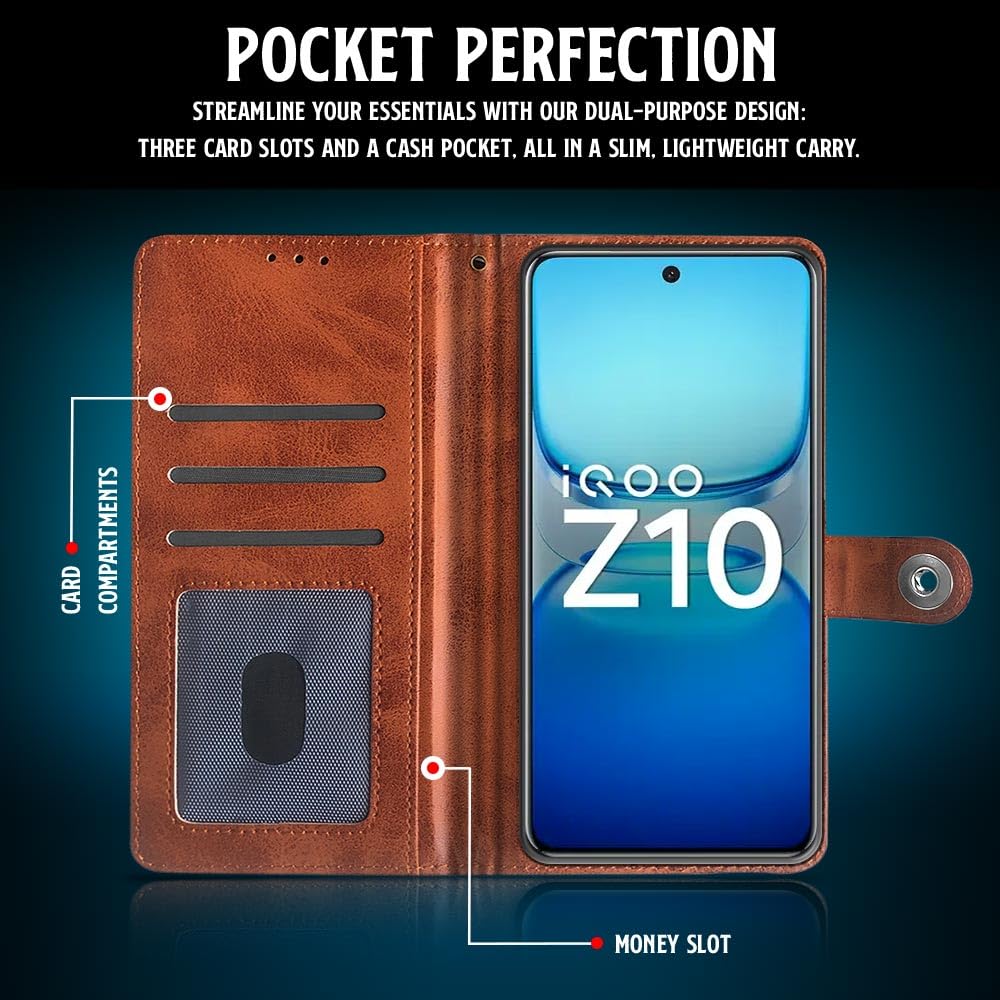 Shock Proof Flip Cover Back Case for Iqoo Z10 5G | Magnetic Wallet Leather Case with Stand
