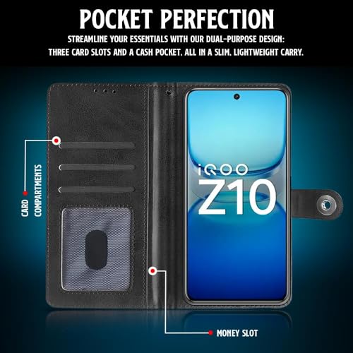 Shock Proof Flip Cover Back Case for Iqoo Z10 5G | Magnetic Wallet Leather Case with Stand