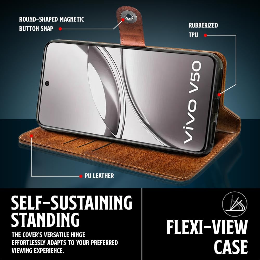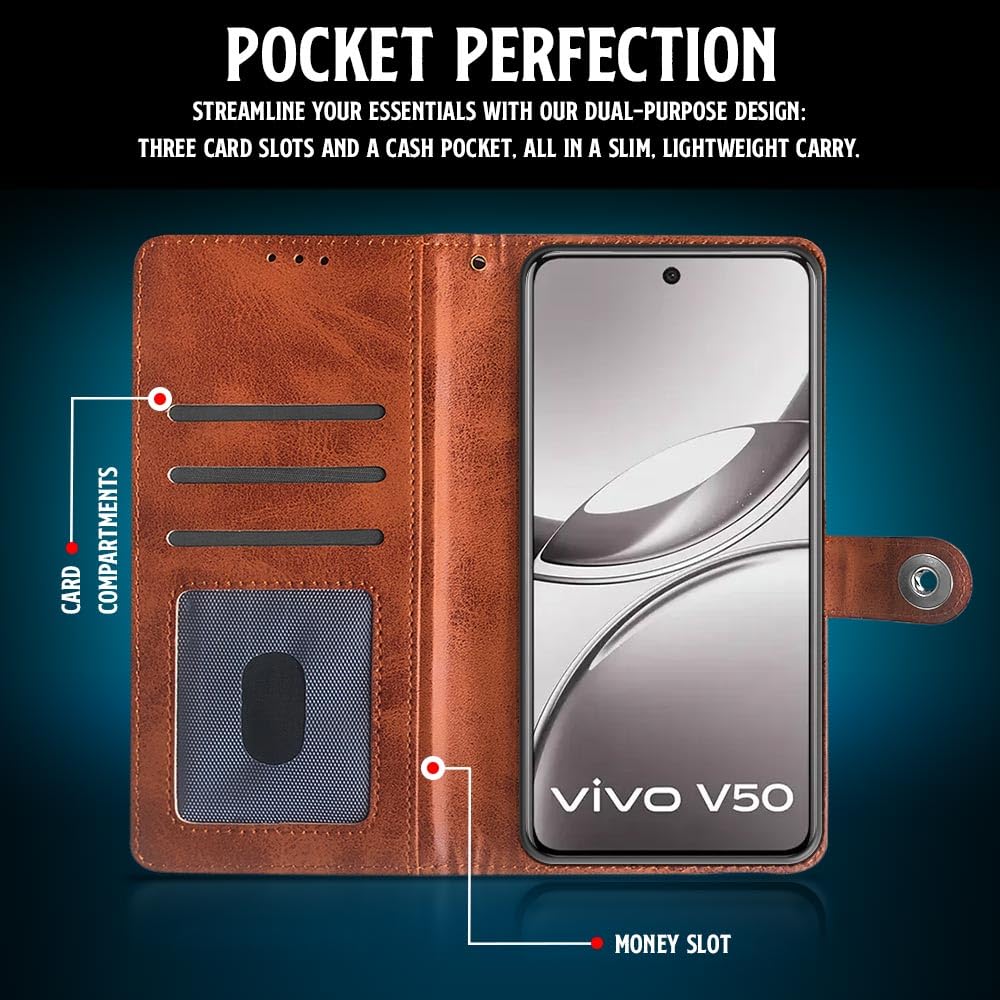 Buy premium shock proof flip cover back case for iqoo z10r 5g. Leather finish with magnetic flip closure, wallet pockets and stand support. Durable protection against drops and scratches with a perfect fit for iqoo z10r 5g.