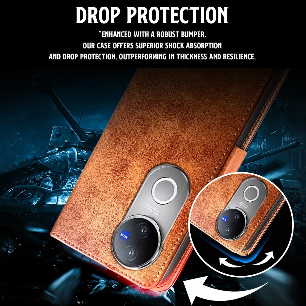 Shock Proof Flip Cover Back Case for Iqoo Z10R 5G | Magnetic Wallet Leather Case with Stand