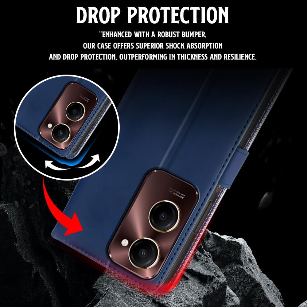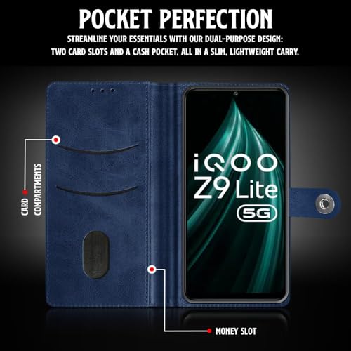 Shock Proof Flip Cover Back Case for Iqoo Z9 Lite | Magnetic Wallet Leather Case with Stand