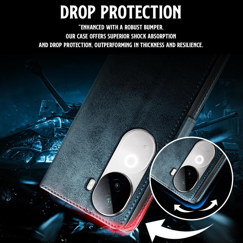 Shock Proof Flip Cover Back Case for Iqoo Z9S 5G | Magnetic Wallet Leather Case with Stand