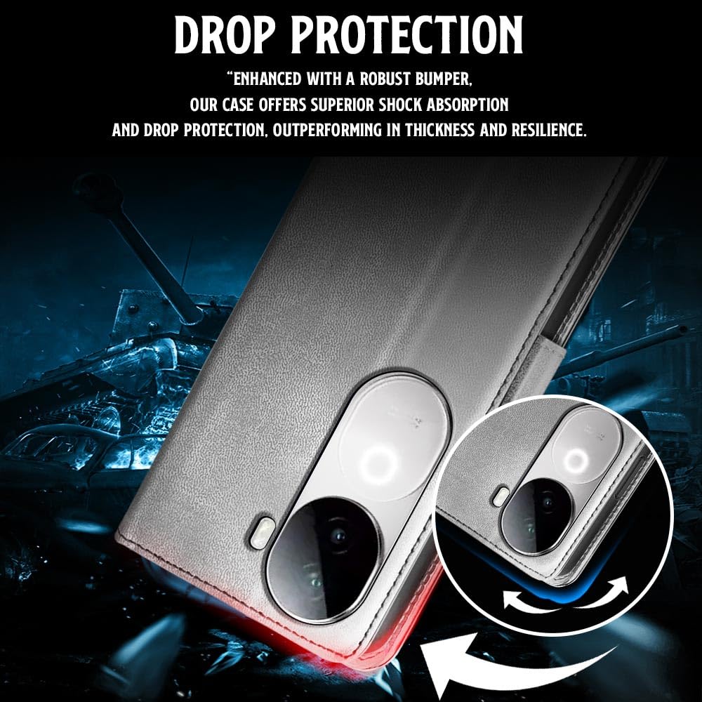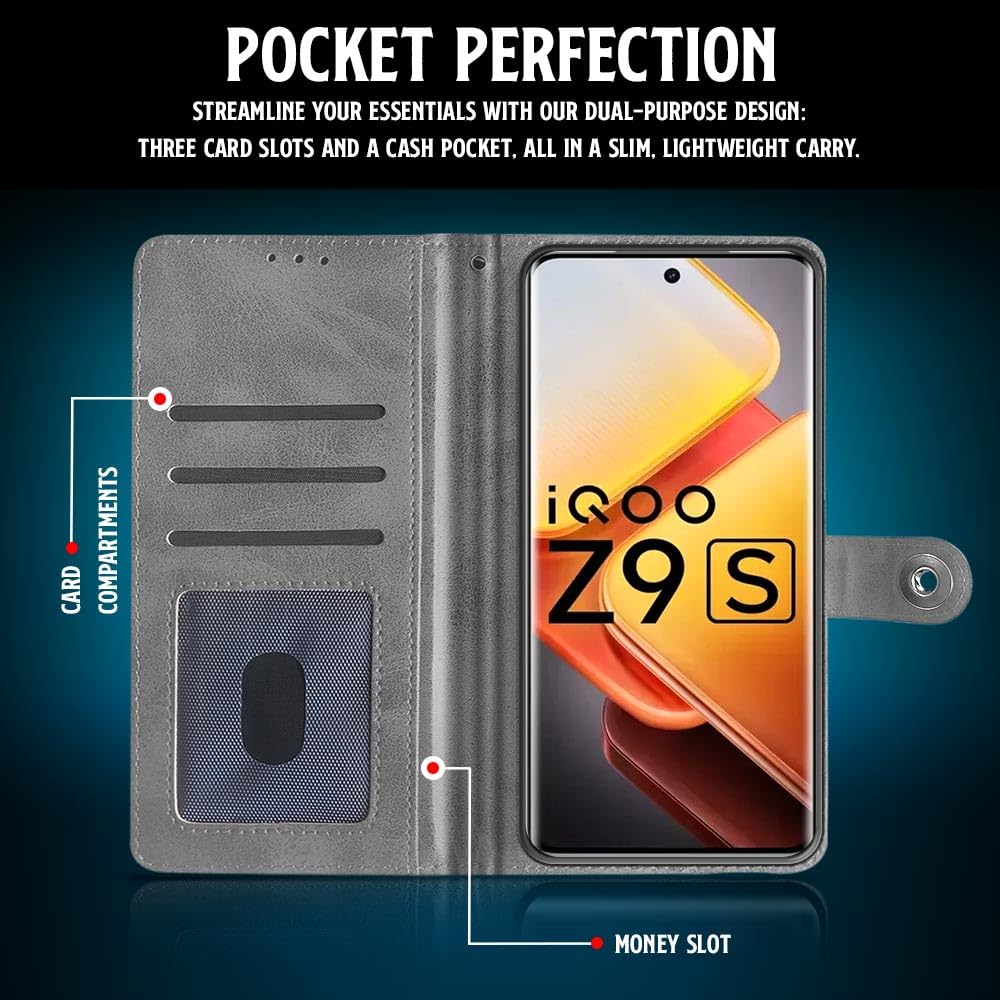 Shock Proof Flip Cover Back Case for Iqoo Z9S 5G | Magnetic Wallet Leather Case with Stand