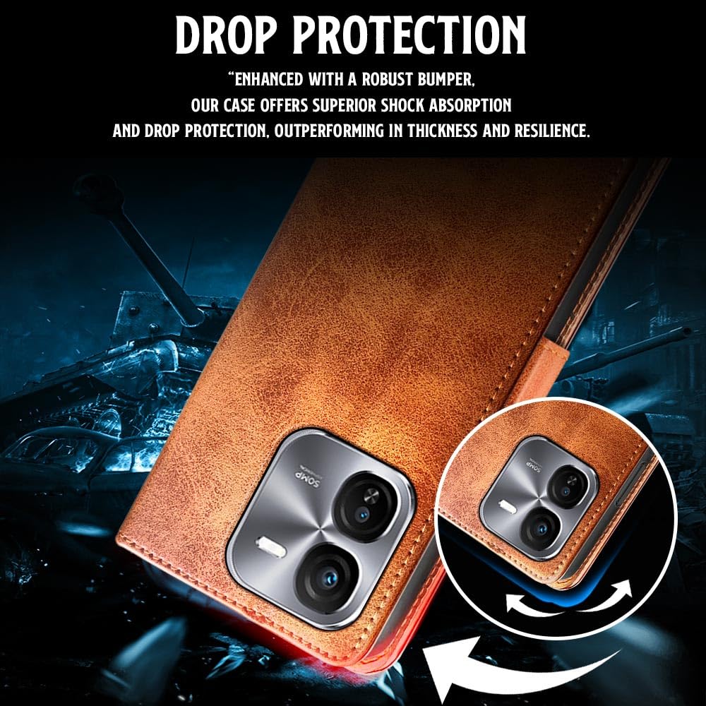 Shock Proof Flip Cover Back Case for Hmd Crest Max 5G | Magnetic Wallet Leather Case with Stand