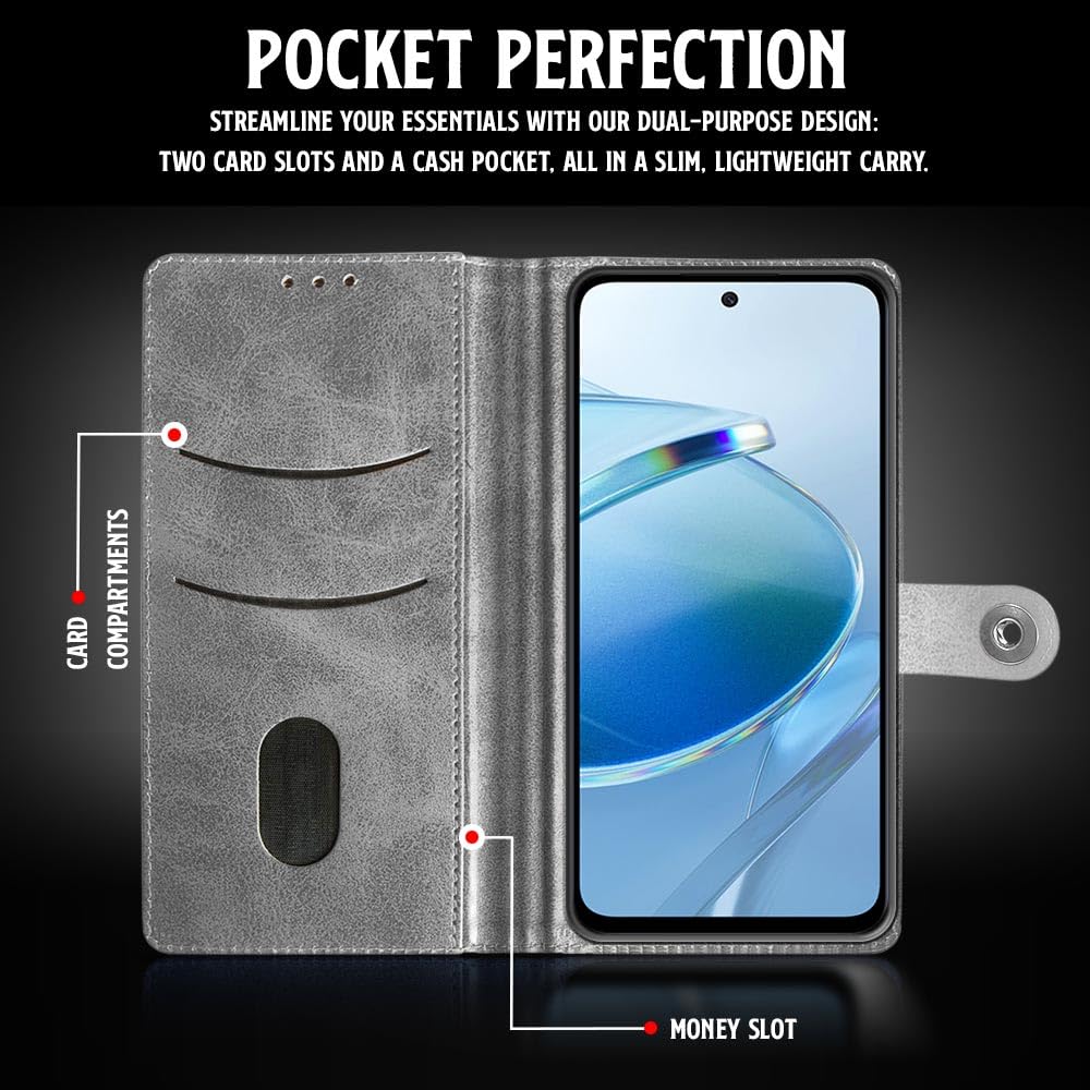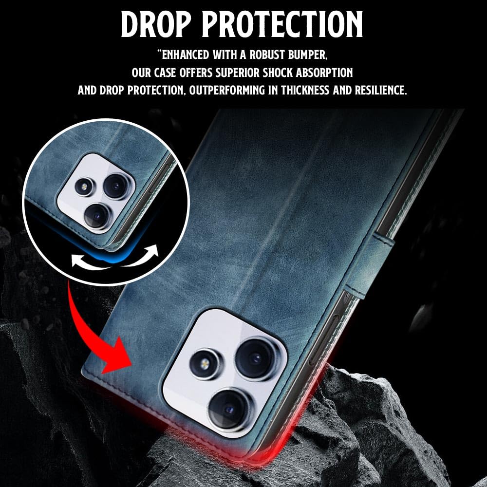 Shock Proof Flip Cover Back Case for Mi Redmi 12 5G | Magnetic Wallet Leather Case with Stand