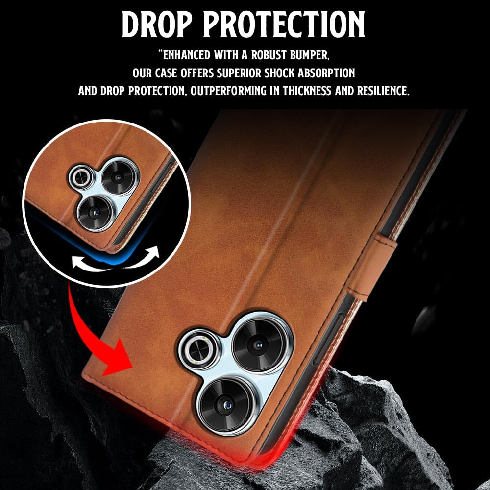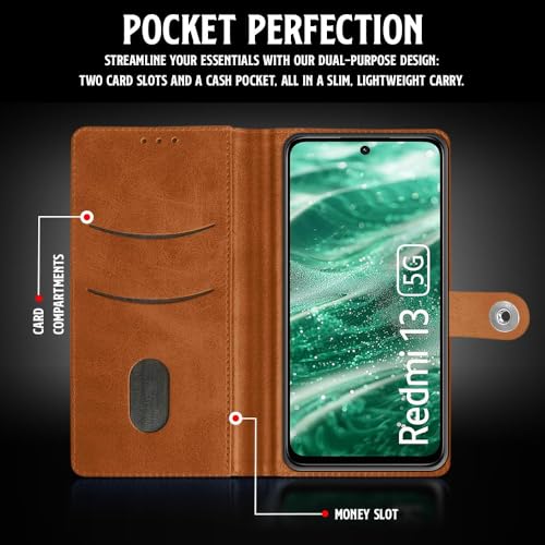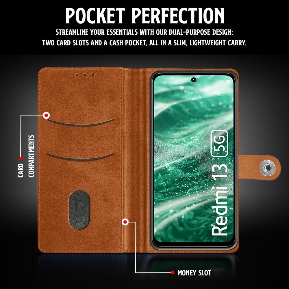 Shock Proof Flip Cover Back Case for Mi Redmi 13 5G | Magnetic Wallet Leather Case with Stand