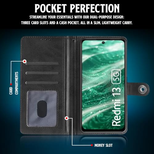 Shock Proof Flip Cover Back Case for Mi Redmi 13 5G | Magnetic Wallet Leather Case with Stand
