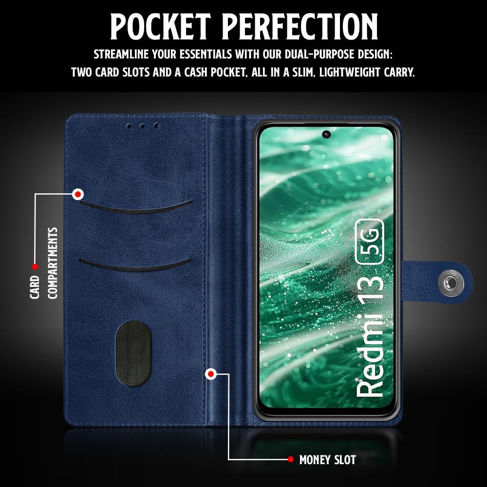Shock Proof Flip Cover Back Case for Mi Redmi 13 5G | Magnetic Wallet Leather Case with Stand