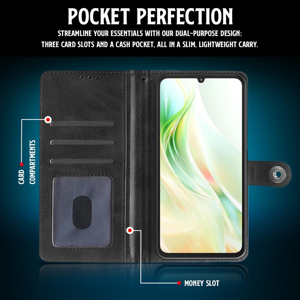 Buy premium shock proof flip cover back case for mi redmi 13c 5g. Leather finish with magnetic flip closure, wallet pockets and stand support. Durable protection against drops and scratches with a perfect fit for mi redmi 13c 5g.