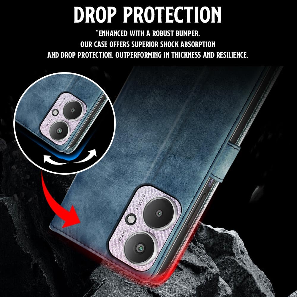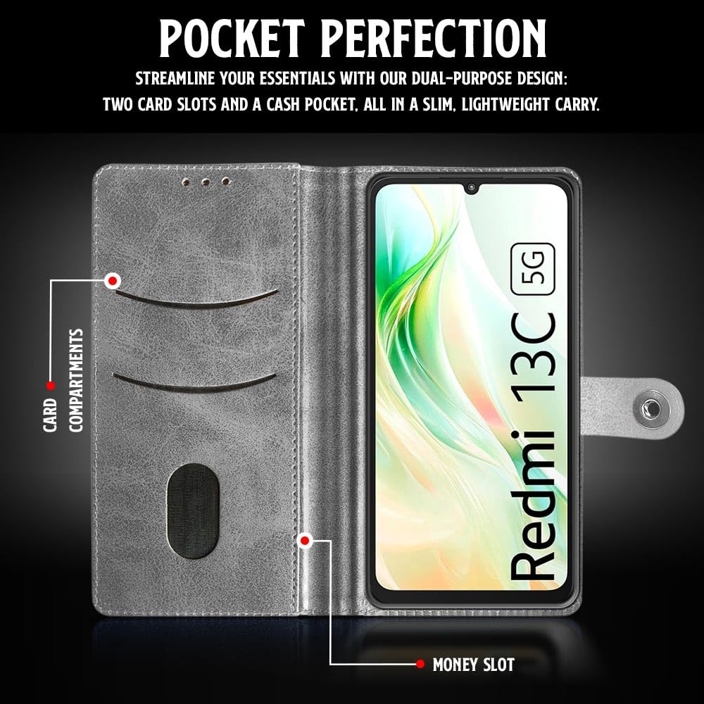 Shock Proof Flip Cover Back Case for Mi Redmi 13C 5G | Magnetic Wallet Leather Case with Stand