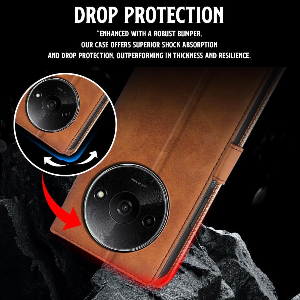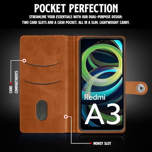Shock Proof Flip Cover Back Case for Mi Redmi A3 | Magnetic Wallet Leather Case with Stand