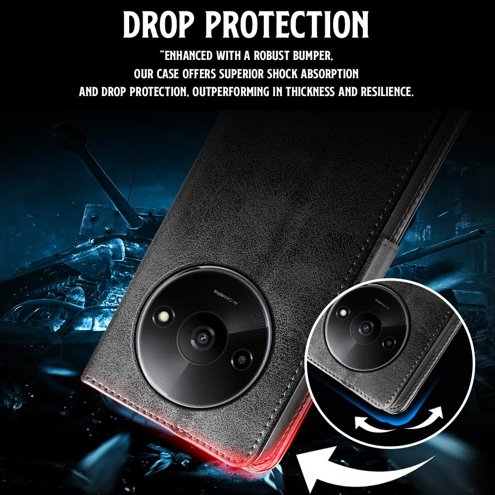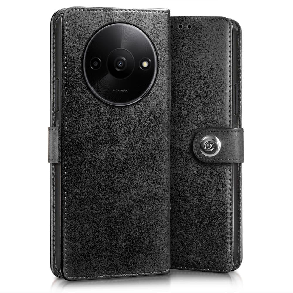 Shock Proof Flip Cover Back Case for Mi Redmi A3 | Magnetic Wallet Leather Case with Stand