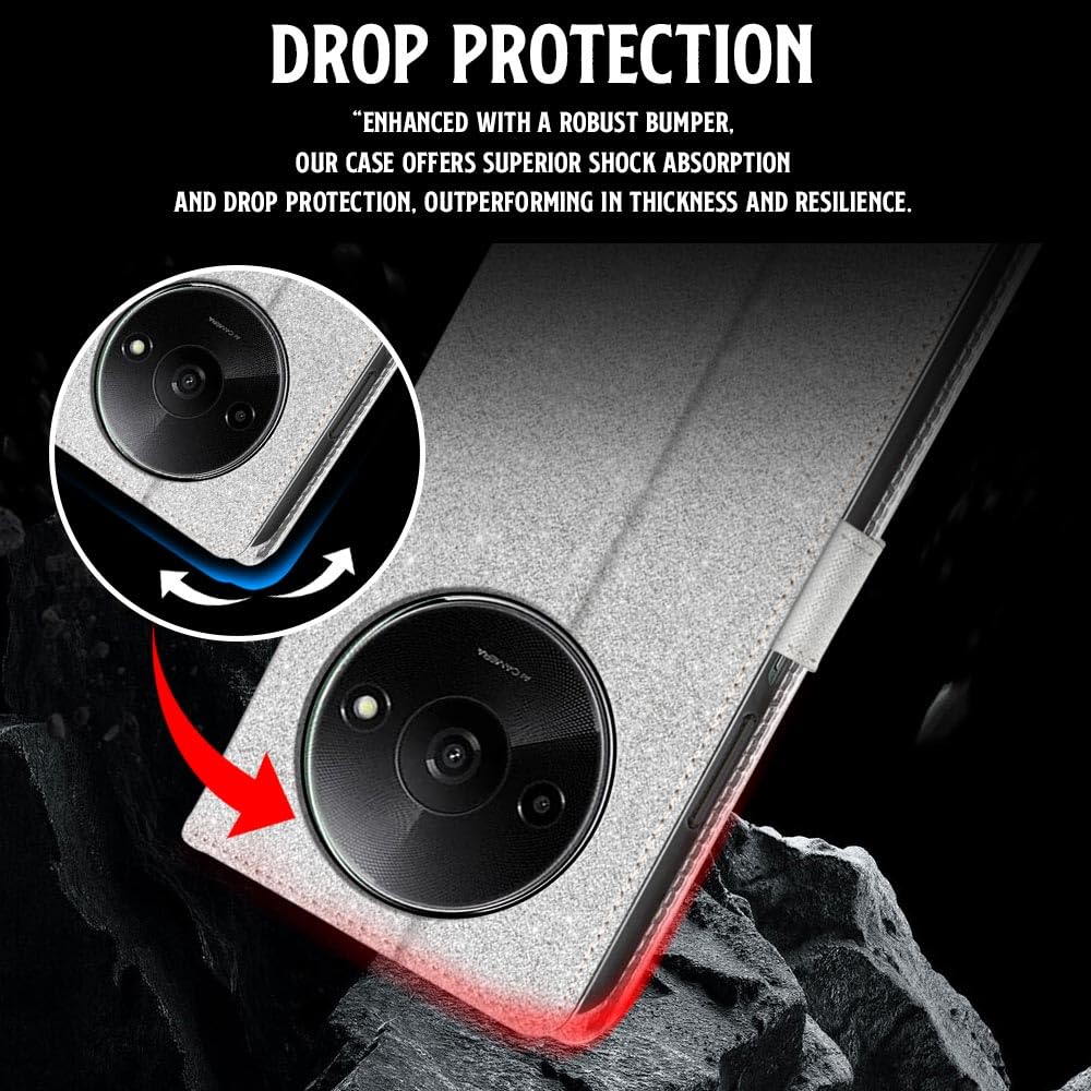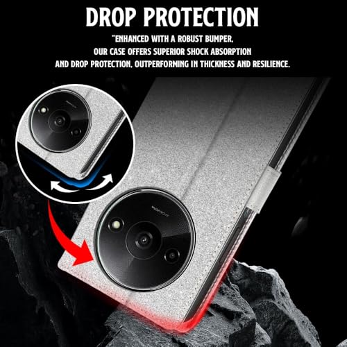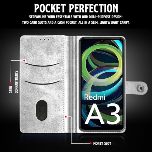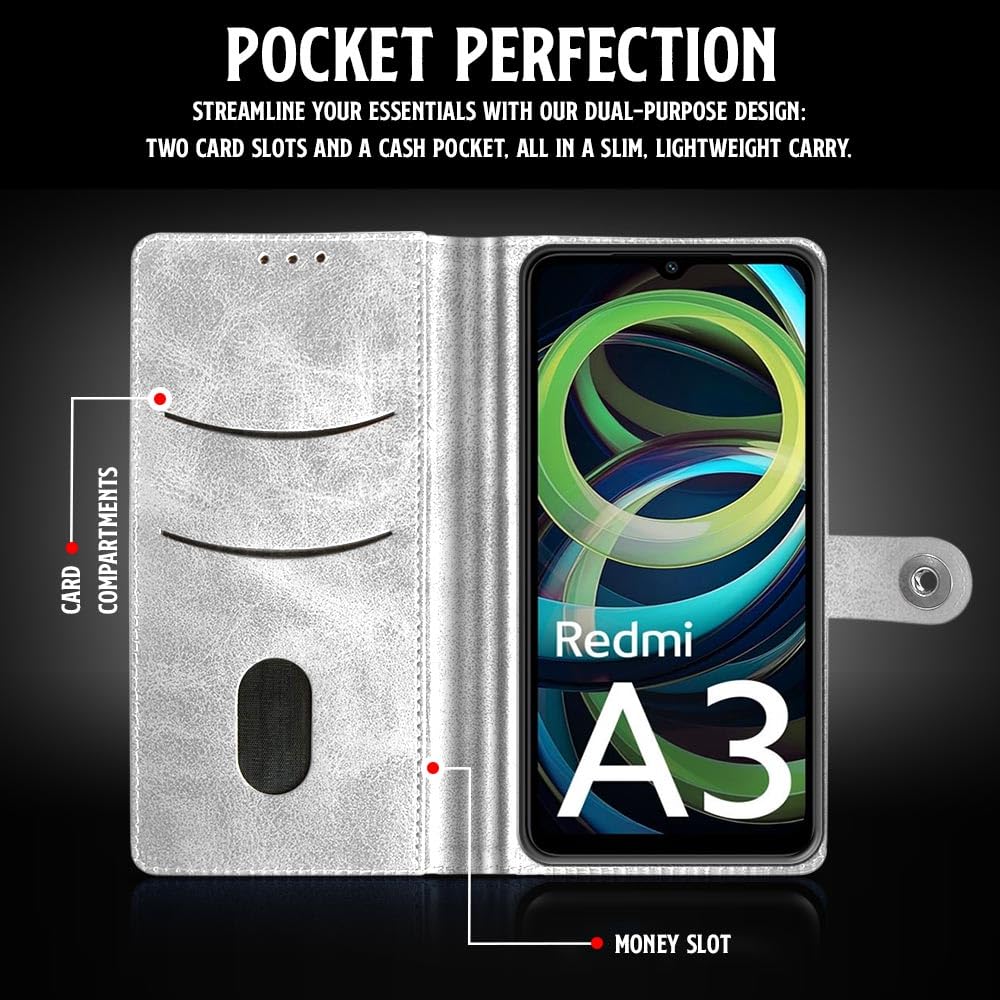 Shock Proof Flip Cover Back Case for Mi Redmi A3 | Magnetic Wallet Leather Case with Stand