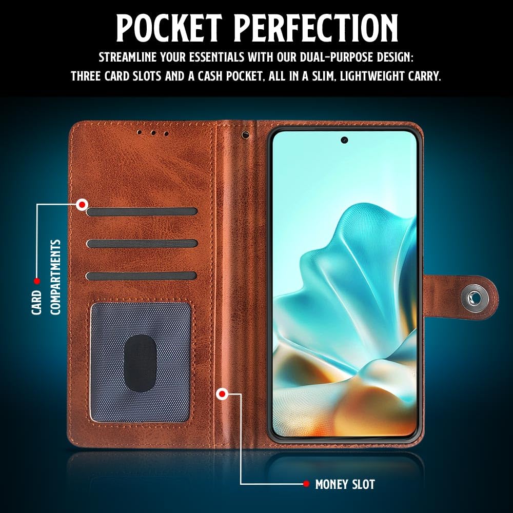 Shock Proof Flip Cover Back Case for Moto Edge 60 Fusion | Magnetic Wallet Leather Case with Stand