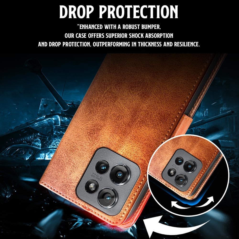 Shock Proof Flip Cover Back Case for Motorola Moto Edge 50 5G | Magnetic Wallet Leather Case with Stand