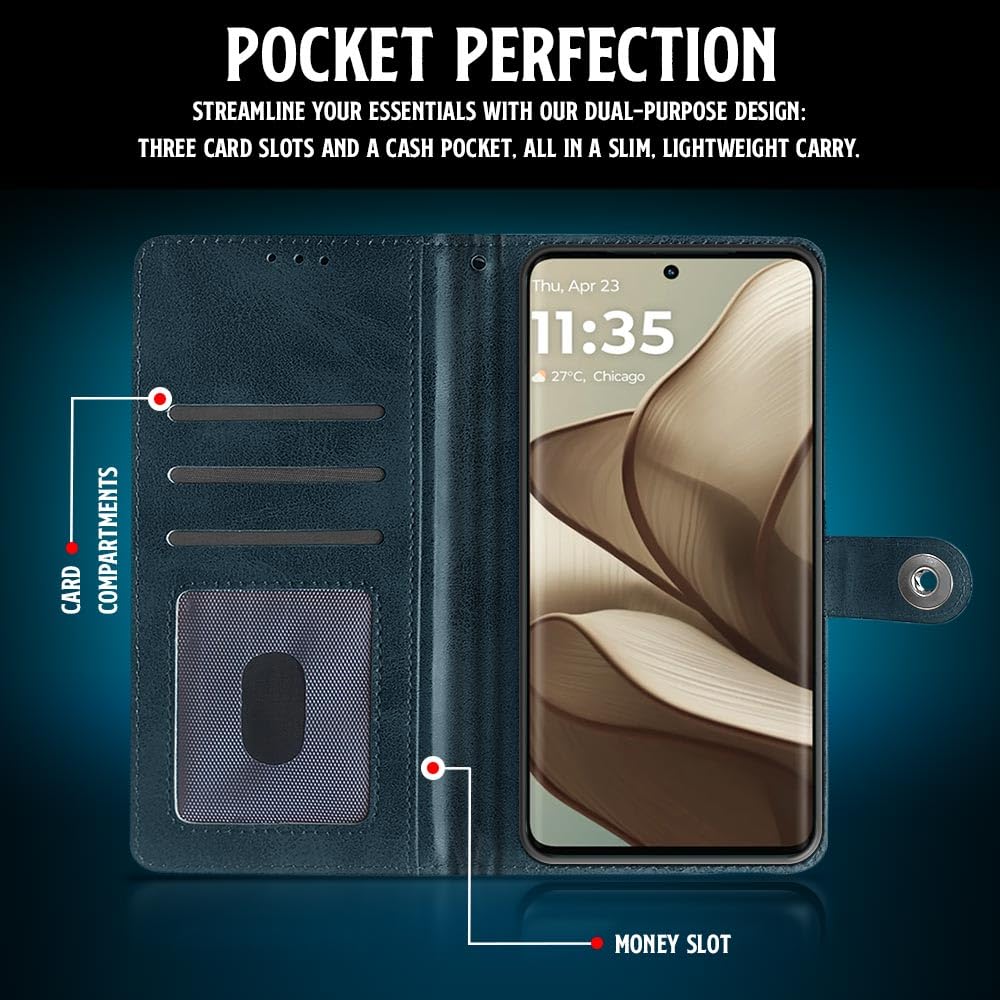 Shock Proof Flip Cover Back Case for Motorola Moto Edge 50 5G | Magnetic Wallet Leather Case with Stand