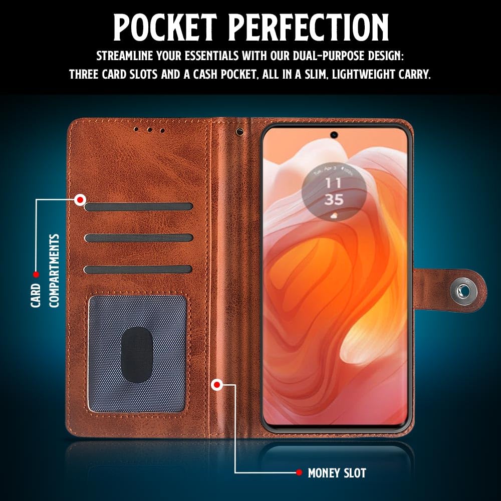 Shock Proof Flip Cover Back Case for Motorola Moto Edge 50 Ultra | Magnetic Wallet Leather Case with Stand