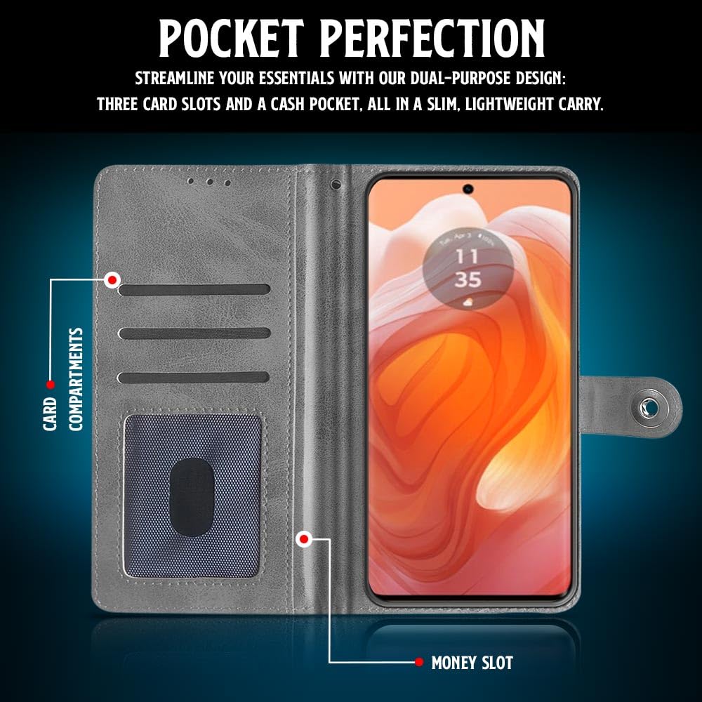 Buy premium shock proof flip cover back case for motorola moto edge 50 ultra. Leather finish with magnetic flip closure, wallet pockets and stand support. Durable protection against drops and scratches with a perfect fit for motorola moto edge 50 ultra.
