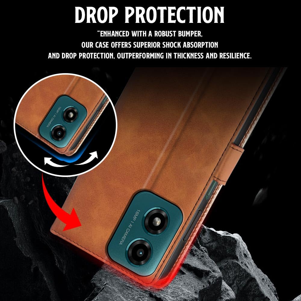 Shock Proof Flip Cover Back Case for Motorola Moto G04 | Magnetic Wallet Leather Case with Stand
