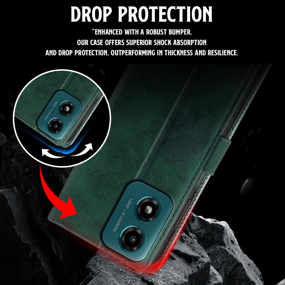 Shock Proof Flip Cover Back Case for Motorola Moto G04 | Magnetic Wallet Leather Case with Stand