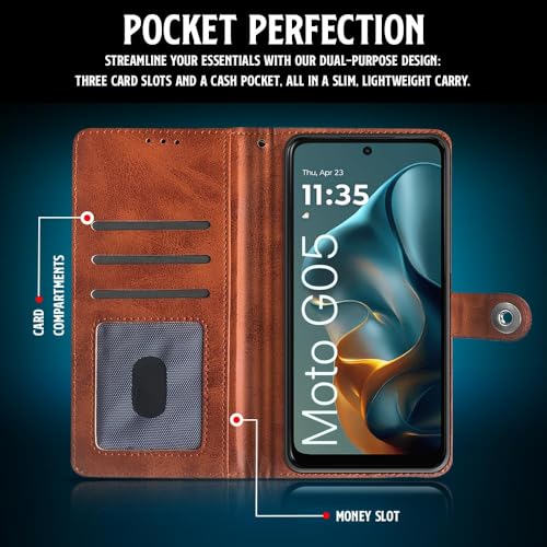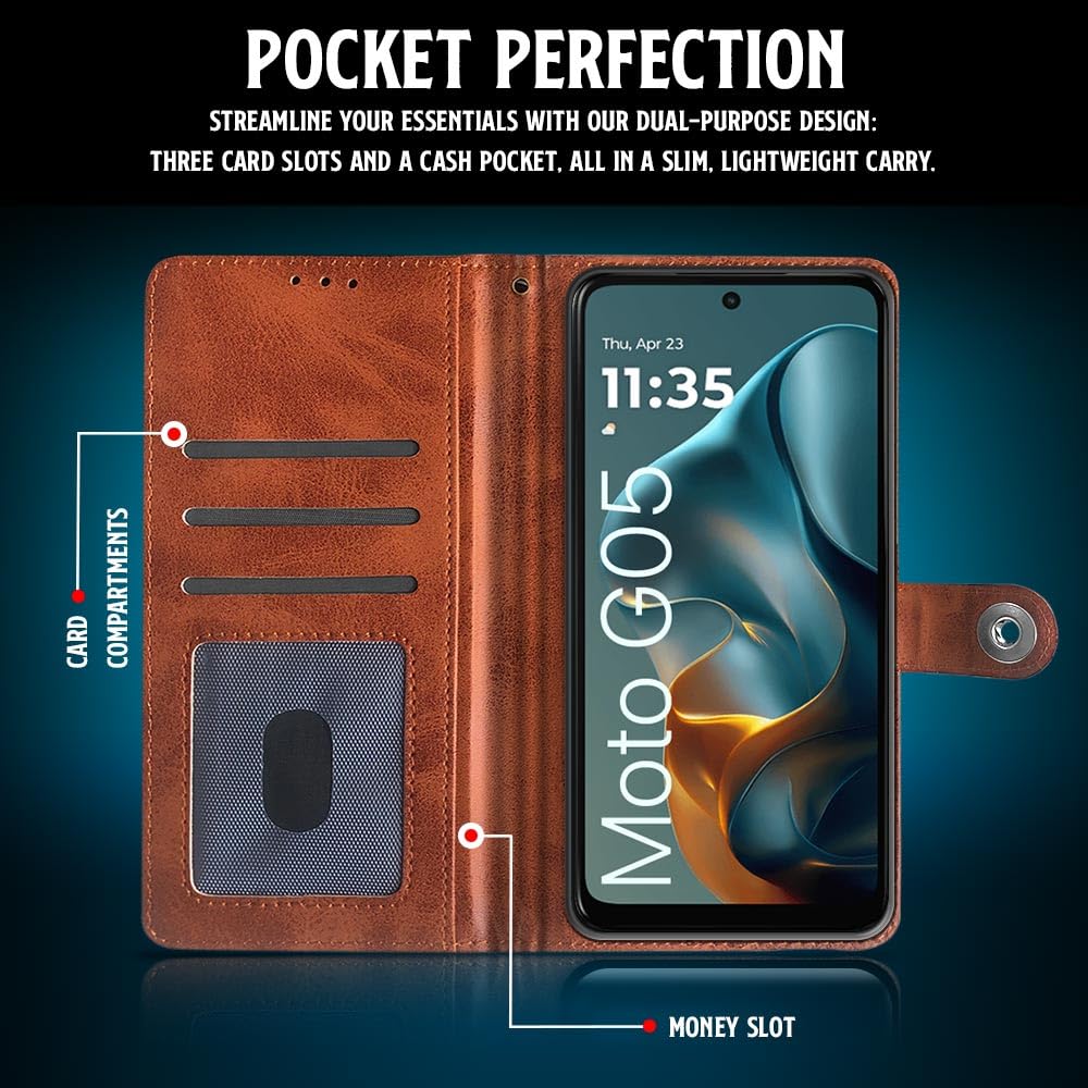 Shock Proof Flip Cover Back Case for Motorola Moto G05 | Magnetic Wallet Leather Case with Stand