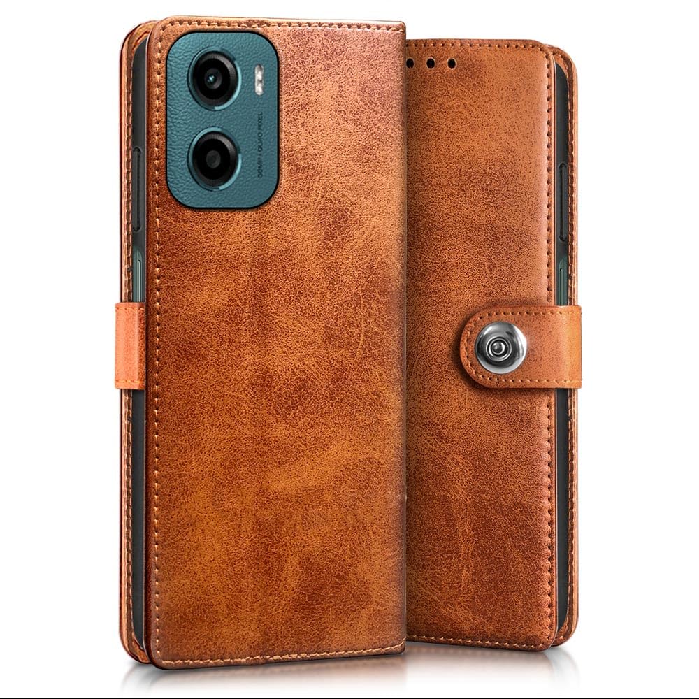 Buy premium shock proof flip cover back case for motorola moto g05. Leather finish with magnetic flip closure, wallet pockets and stand support. Durable protection against drops and scratches with a perfect fit for motorola moto g05.