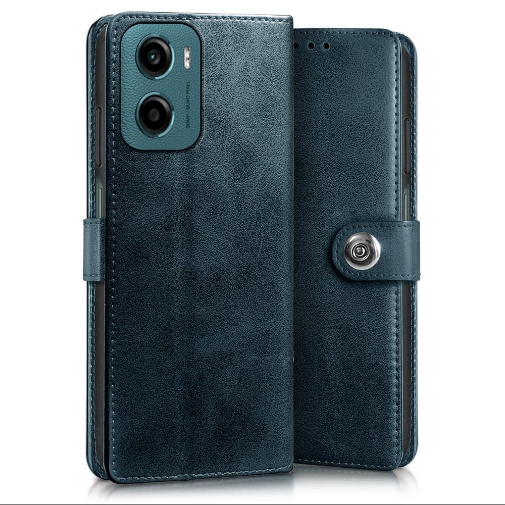 Buy premium shock proof flip cover back case for motorola moto g05. Leather finish with magnetic flip closure, wallet pockets and stand support. Durable protection against drops and scratches with a perfect fit for motorola moto g05.