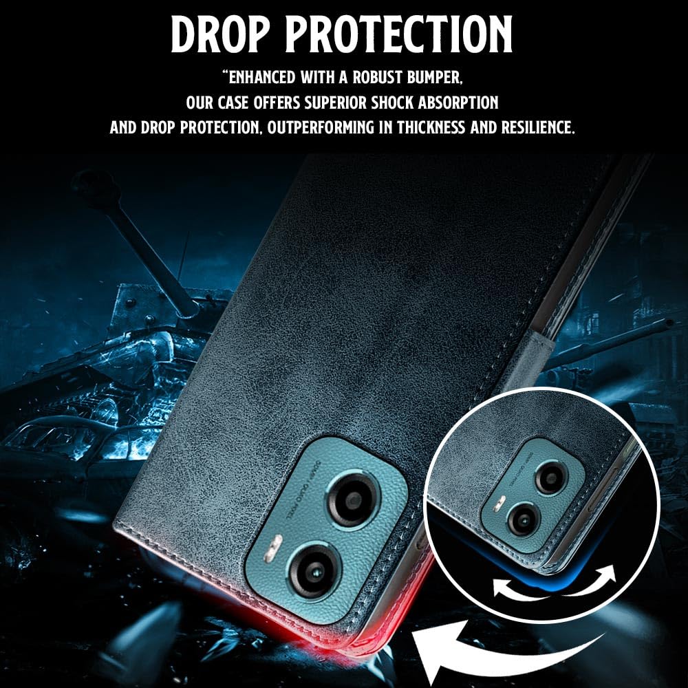 Shock Proof Flip Cover Back Case for Motorola Moto G05 | Magnetic Wallet Leather Case with Stand