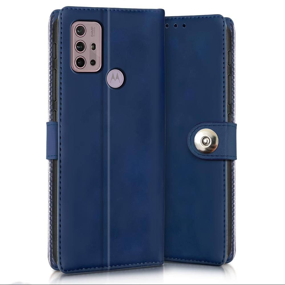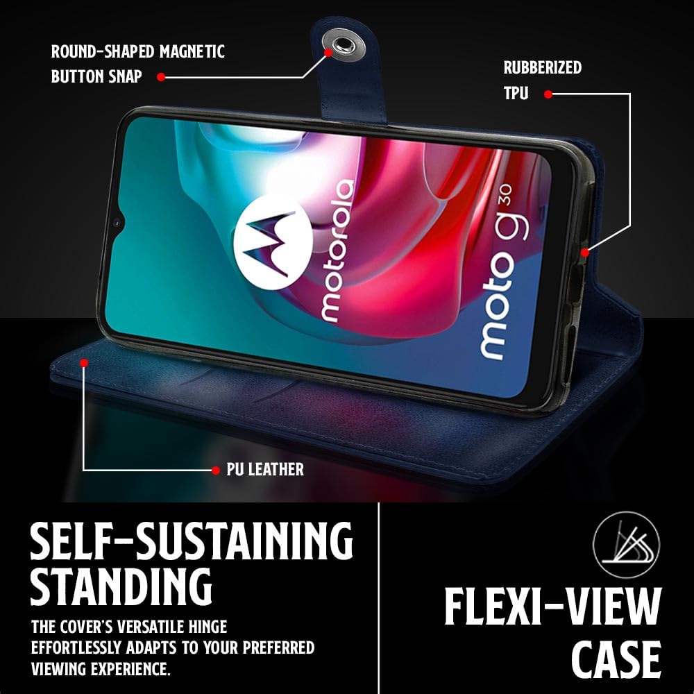 Buy premium shock proof flip cover back case for motorola moto g30. Leather finish with magnetic flip closure, wallet pockets and stand support. Durable protection against drops and scratches with a perfect fit for motorola moto g30.