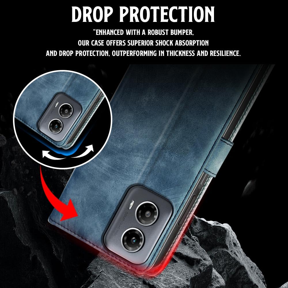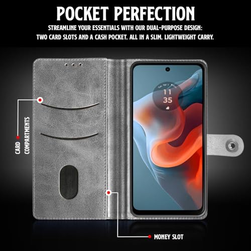 Shock Proof Flip Cover Back Case for Motorola Moto G34 5G | Magnetic Wallet Leather Case with Stand