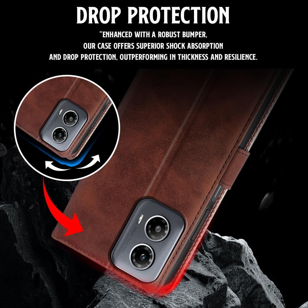 Shock Proof Flip Cover Back Case for Motorola Moto G34 5G | Magnetic Wallet Leather Case with Stand