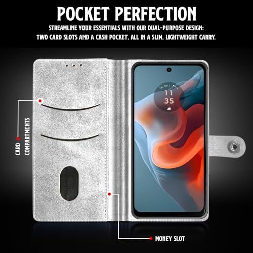 Shock Proof Flip Cover Back Case for Motorola Moto G34 5G | Magnetic Wallet Leather Case with Stand