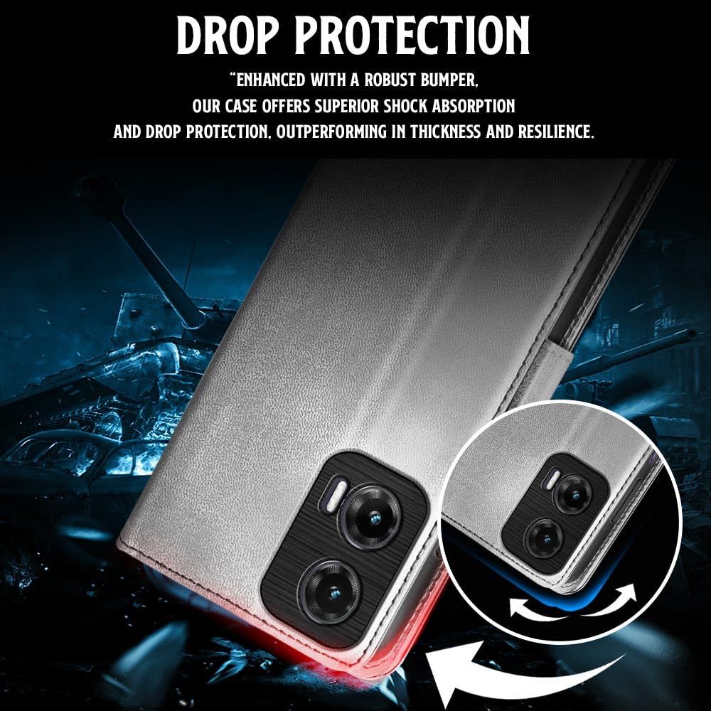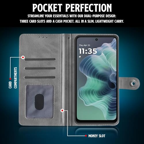 Shock Proof Flip Cover Back Case for Motorola Moto G35 5G | Magnetic Wallet Leather Case with Stand