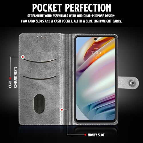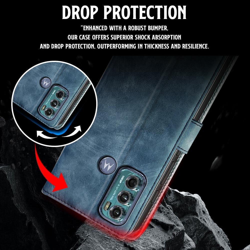 Shock Proof Flip Cover Back Case for Motorola Moto G60 | Magnetic Wallet Leather Case with Stand