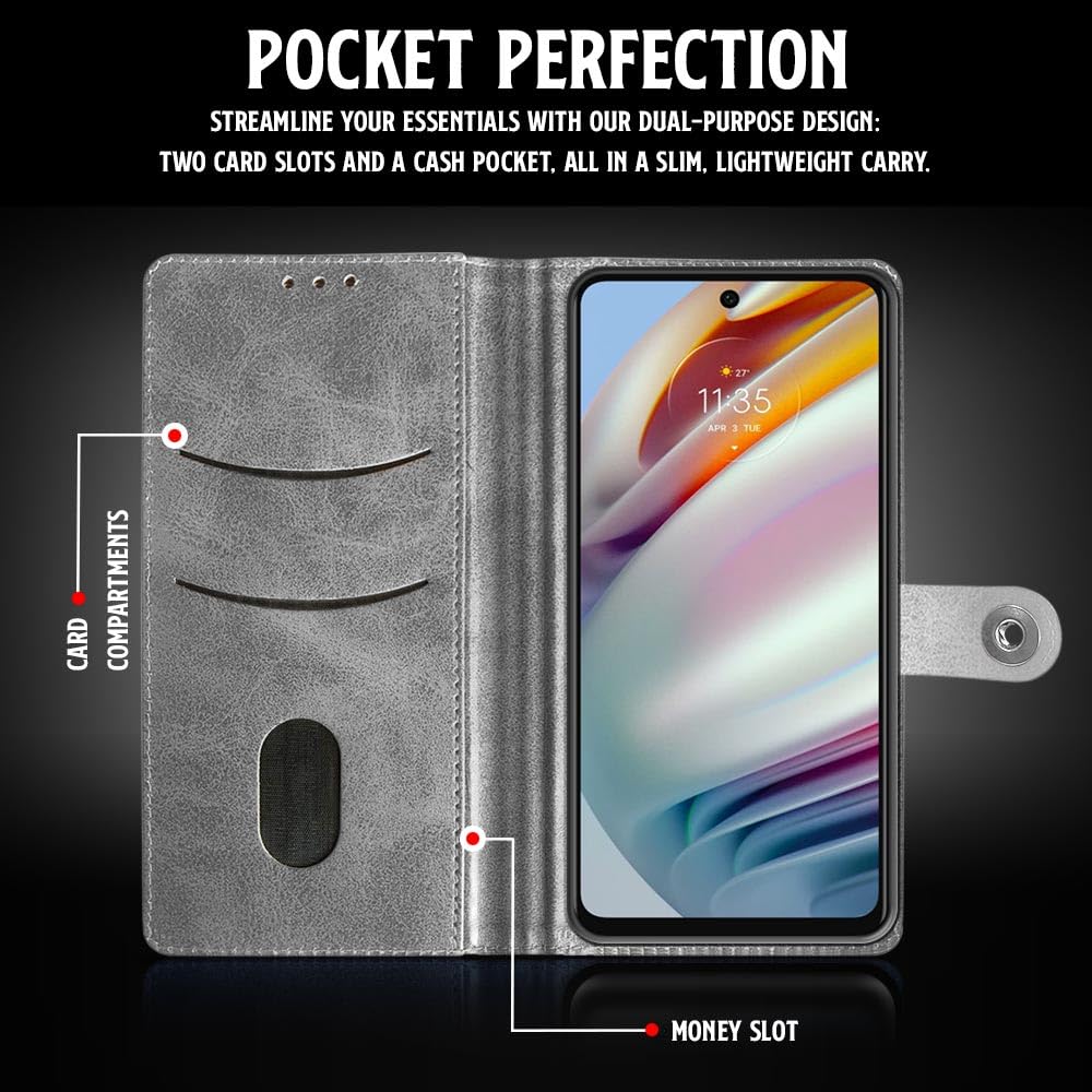 Buy premium shock proof flip cover back case for motorola moto g60. Leather finish with magnetic flip closure, wallet pockets and stand support. Durable protection against drops and scratches with a perfect fit for motorola moto g60.