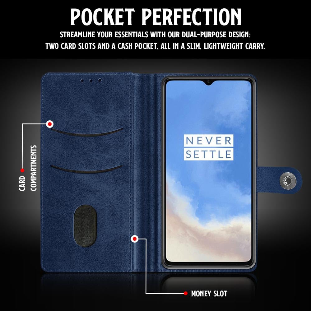Buy premium shock proof flip cover back case for oneplus 7t. Leather finish with magnetic flip closure, wallet pockets and stand support. Durable protection against drops and scratches with a perfect fit for oneplus 7t.