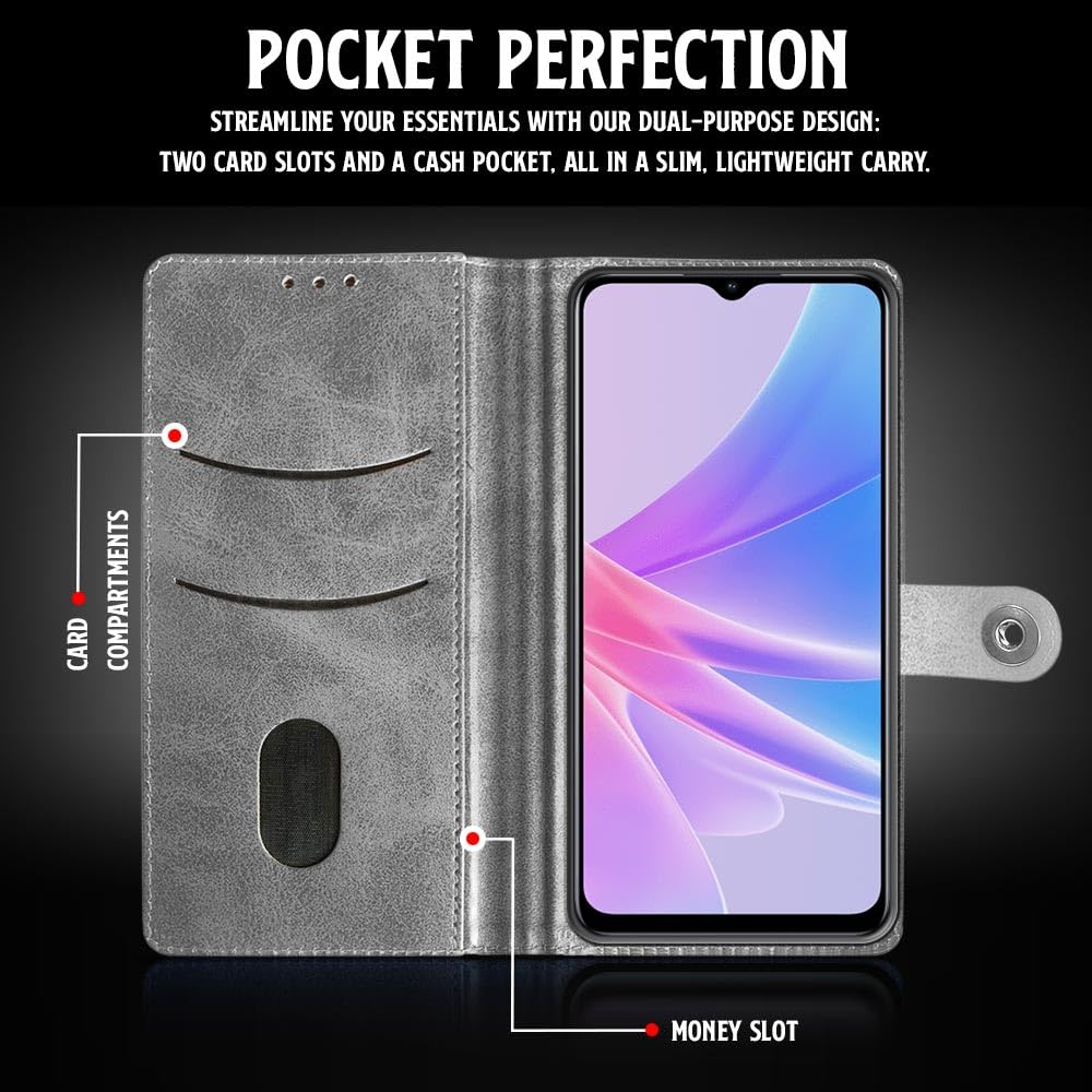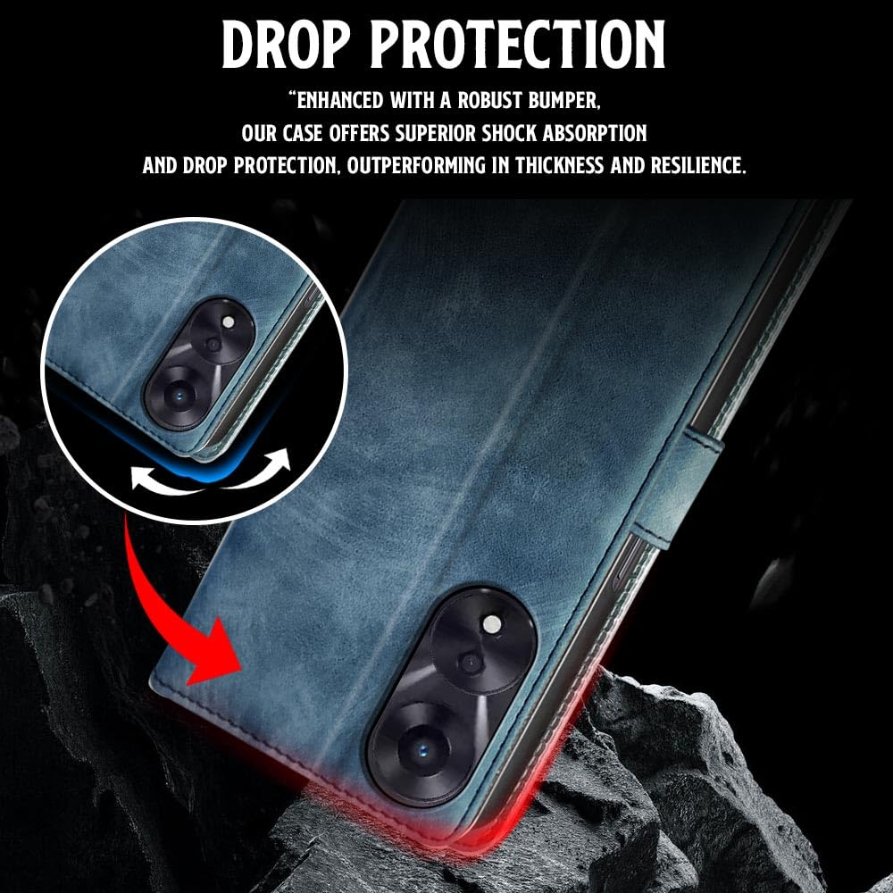 Shock Proof Flip Cover Back Case for Oppo A78 5G | Magnetic Wallet Leather Case with Stand