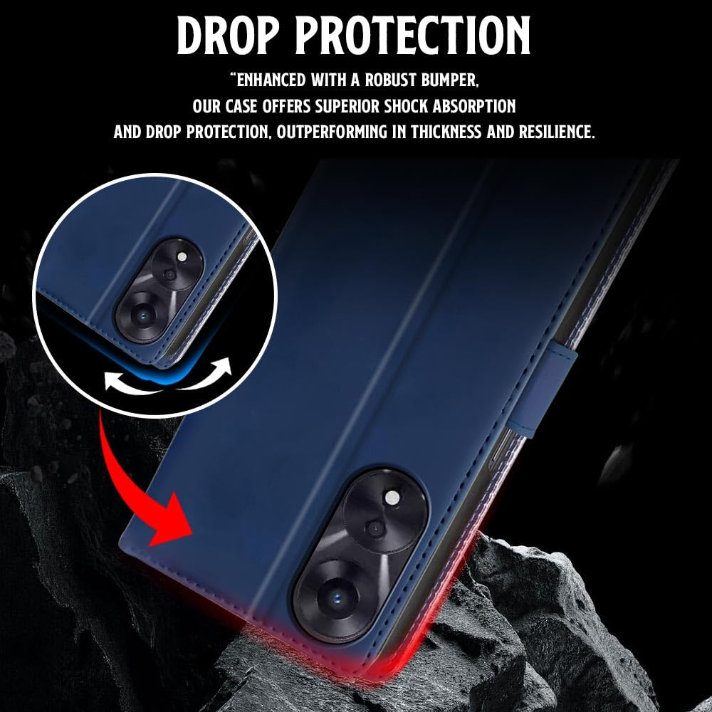 Shock Proof Flip Cover Back Case for Oppo A78 5G | Magnetic Wallet Leather Case with Stand