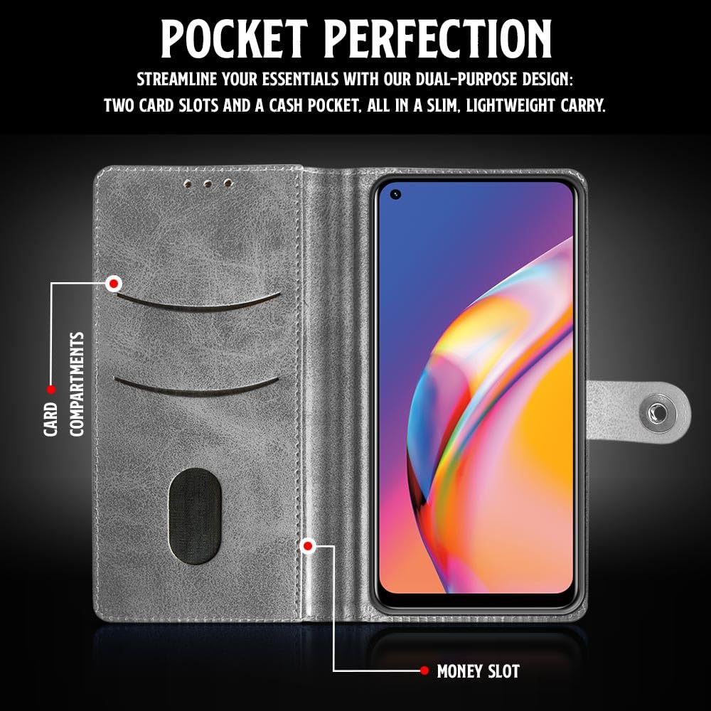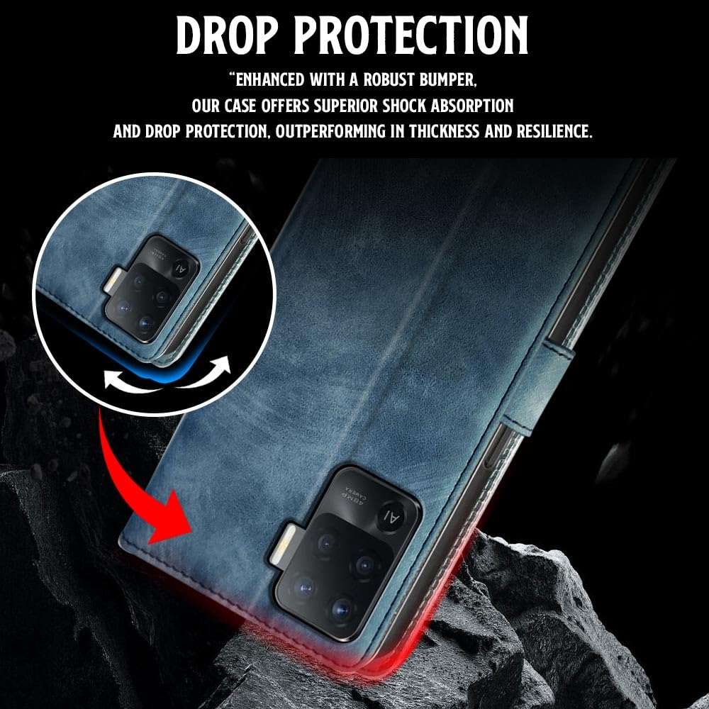 Shock Proof Flip Cover Back Case for Oppo F19 Pro | Magnetic Wallet Leather Case with Stand