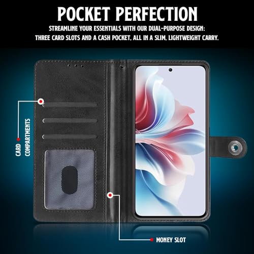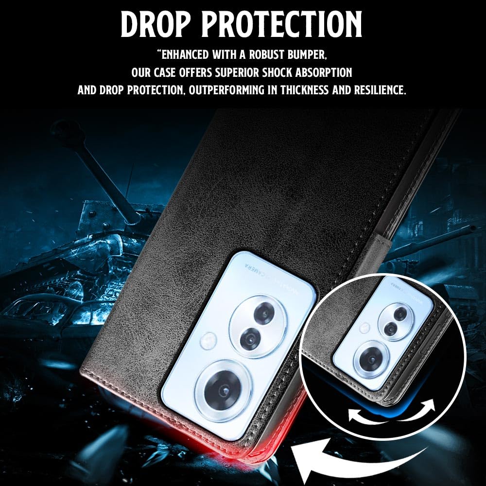 Shock Proof Flip Cover Back Case for Oppo F25 Pro 5G | Magnetic Wallet Leather Case with Stand